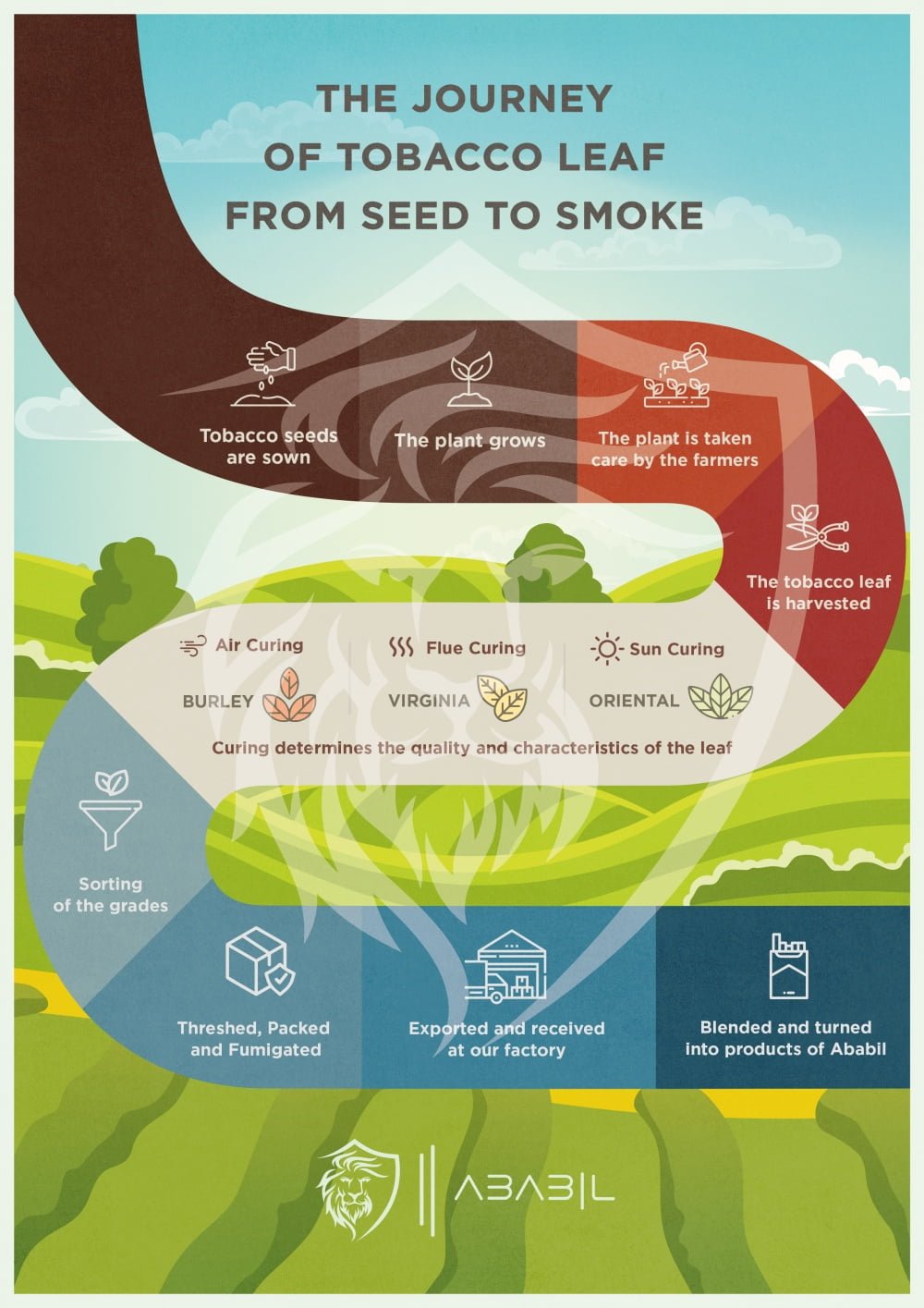 The three tobacco types are Virginia, burley and oriental. These tobaccos are grown in different countries like Argentina, Brazil, United States, Malawi, Zimbabwe, South Africa, India, China, Indonesia, Bangladesh, Thailand, Bulgaria, Turkey, UAE, Ethiopia, Serbia, Zambia, Greece, Macedonia,